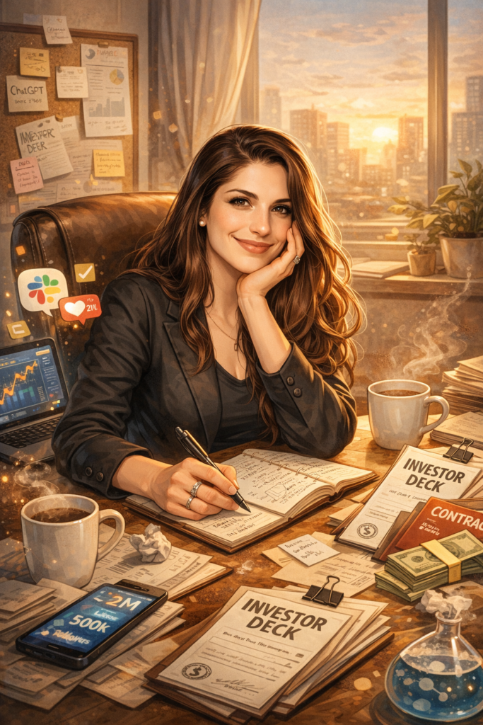 Alesha Peluso at work, by ChatGPT